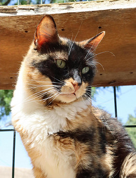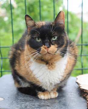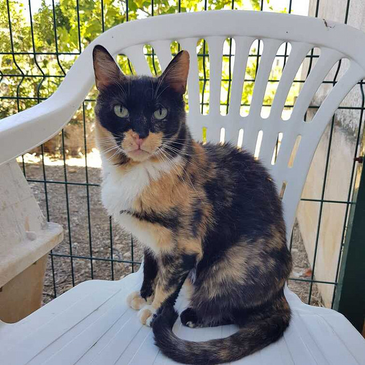 O meu temperamento: sou uma linda gata tricolor que gosta de observar à distância. Sou a gata perfeita para alguém que compreende que o verdadeiro companheirismo nem sempre requer contacto físico. Dou-me muito bem com outros gatos e tenho muitos amigos felinos no abrigo. Gosto de estar perto dos humanos, mas sou um pouco tímida e não gosto de ser tocada, mas quem sabe? No ambiente de um lar amoroso e com paciência, posso surpreender os meus donos.