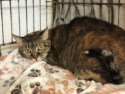 A minha história de vida: fui adotada na associação, quando jovem, por uma senhora idosa e tive, durante muitos anos, um lar feliz e saudável onde vivia com outro gato que era o meu melhor amigo. Infelizmente, em 2023, tanto o meu melhor amigo como a minha dona faleceram e fui novamente entregue à Cadela Carlota.