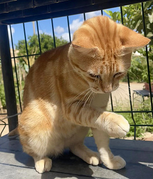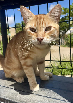 O meu temperamento: sou um gato muito meigo e afetuoso. Adoro tomar banhos de sol, receber mimos e, claro, comer — é sempre uma das minhas partes preferidas do dia! Respondo com entusiasmo sempre que alguém me chama para a refeição. Dou-me muito bem com outros gatos e também com humanos. Já passei tempo suficiente na rua e agora só quero encontrar um lar onde seja bem tratado e muito amado.